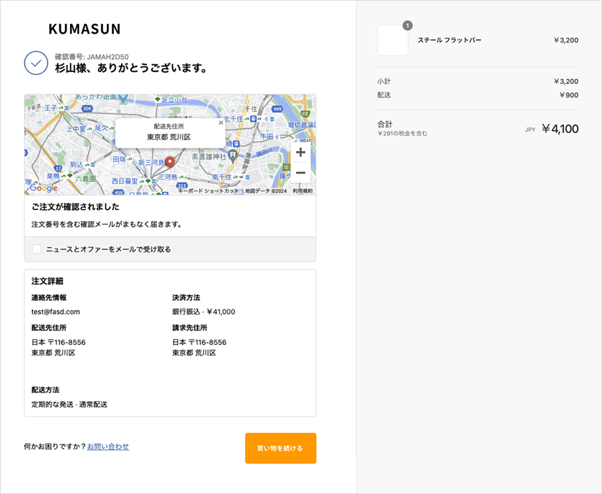 会員登録完了後、弊社にて注文内容を登録しご注文確定メールでお知らせいたします。