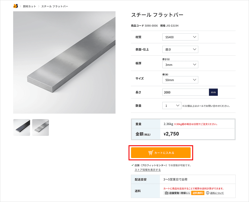 ご希望の商品の項目を選択し、「カートに入れる」ボタンをクリックしてお買い物を進めてください。