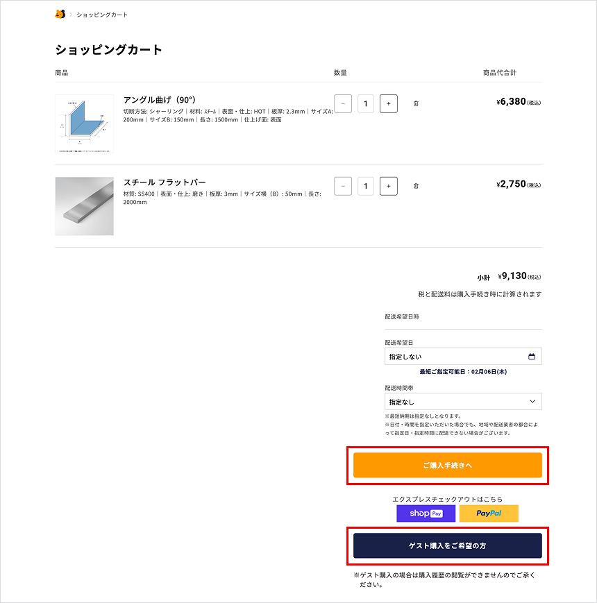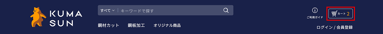 カートの中身を確認して、会員登録済みの方は「ご購入手続きへ」をクリックしてログインしてください。次ステップの「3.お客様情報入力」を省略できます。会員以外の方もご購入いただけます。ゲスト購入希望の方は「ゲスト購入を希望の方」をクリックしてください。