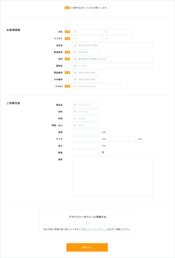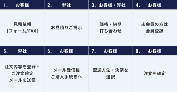 オーダー加工品・鋼材商品を購入する場合は、下記のような流れとなります。